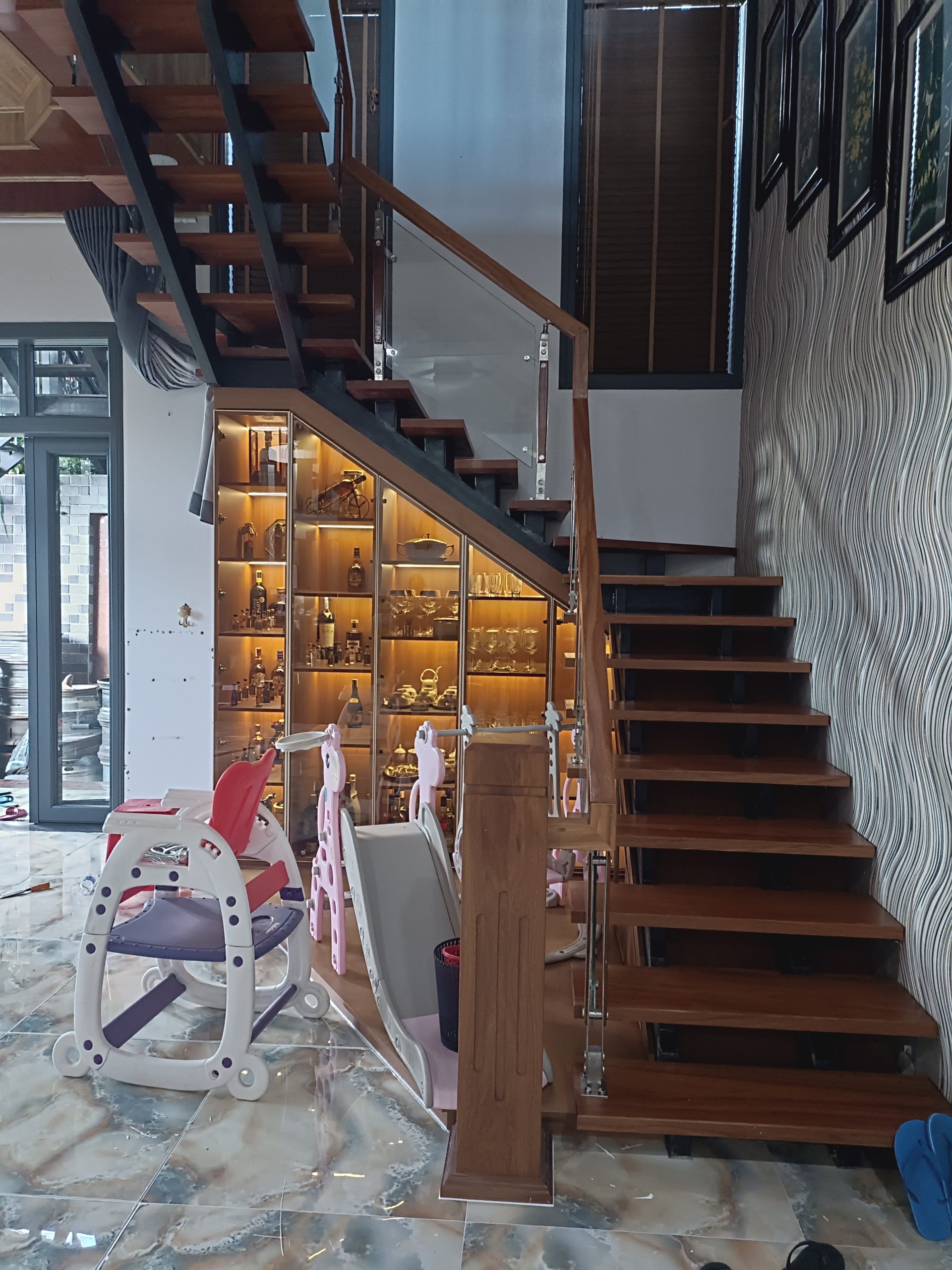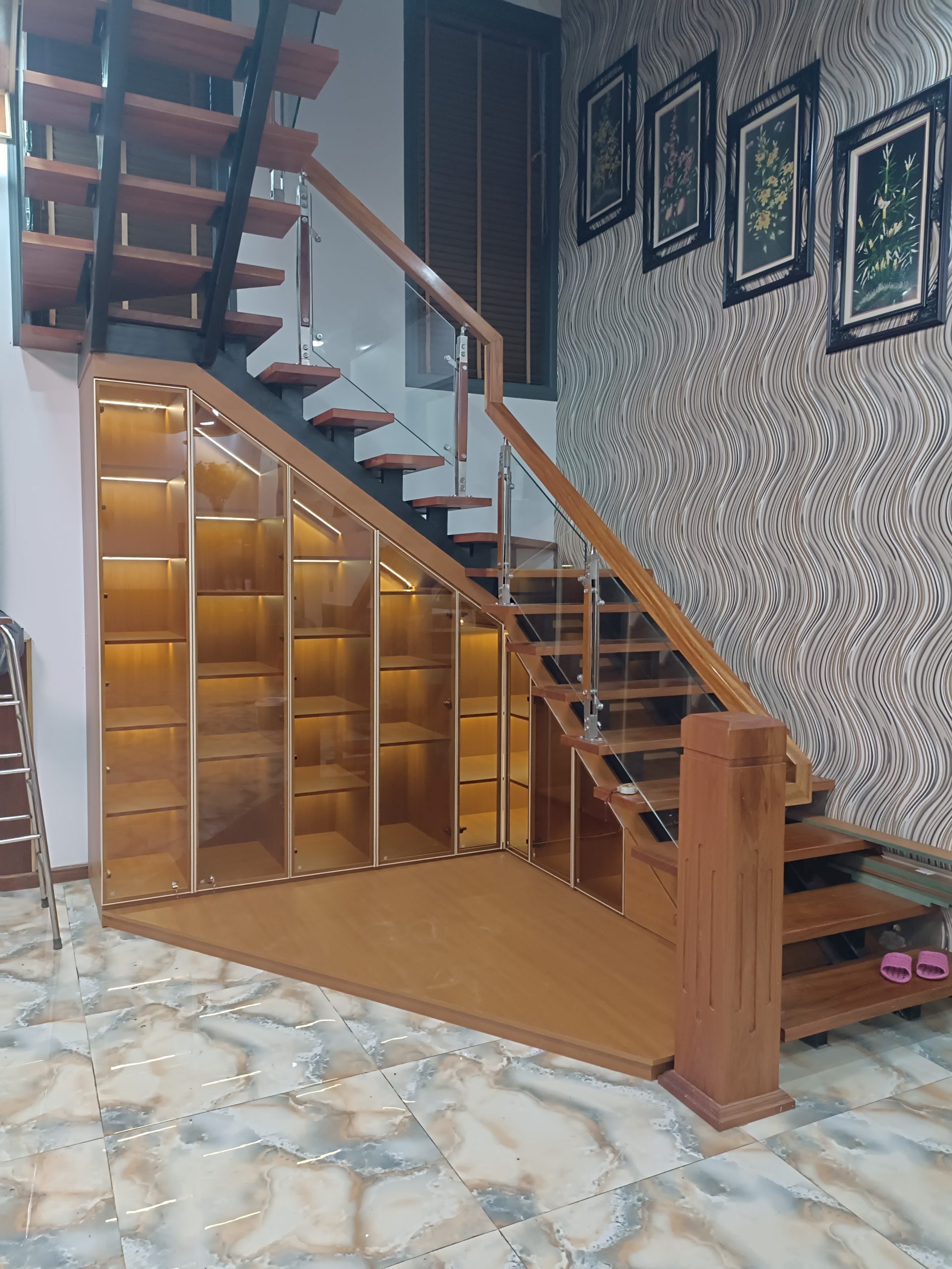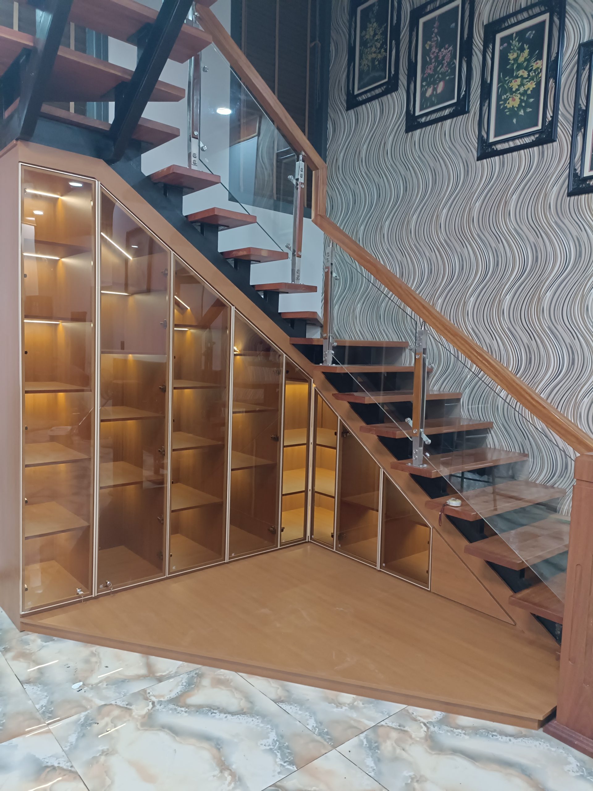 🔹 Tủ Gầm Cầu Thang Cánh Kính Tràn Viền Viền Nhôm Cao Cấp